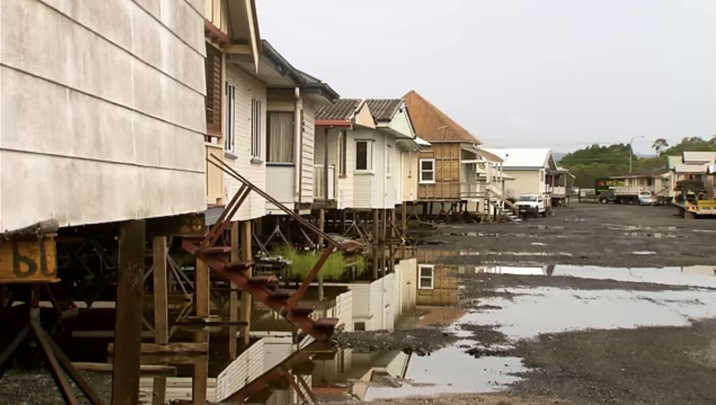 A solarpunk setting might actually find itself with a large supply of removal homes. As in real life, where houses moved with government funding assistance can only be relocated to land outside of Flood Priority 1, 2 or 3 zones, a solarpunk society might identify large swaths of land which are unsuitable for long-term human settlement because of flood or fire risk. One of the main criteria for suitability for relocation is a wood frame, complete with floor, as wood handles movement and flexing better than brick and concrete, and houses built directly on concrete slabs will obviously have problems being moved elsewhere. Fortunately, stick-frame construction (on pylons or over basements) is very common in North America, so many buildings could be suitable.